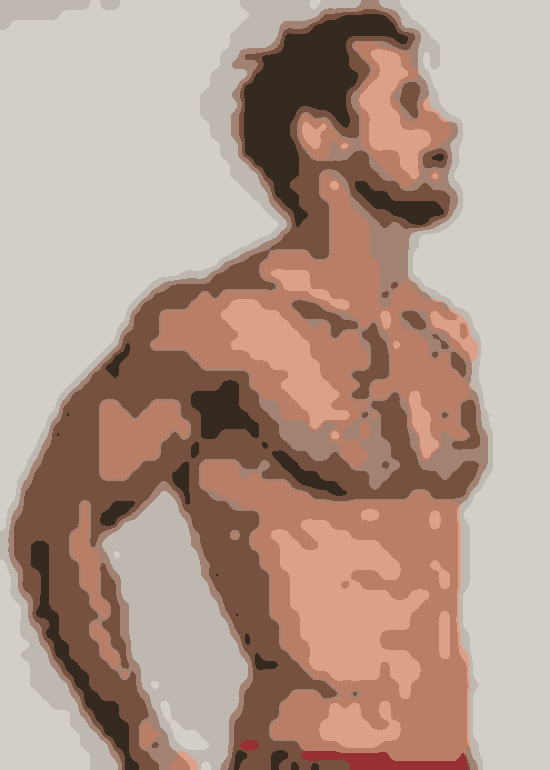 ylävartalo edestä, ei paitaa, urheilullinen, karvattomaksi ajeltu |