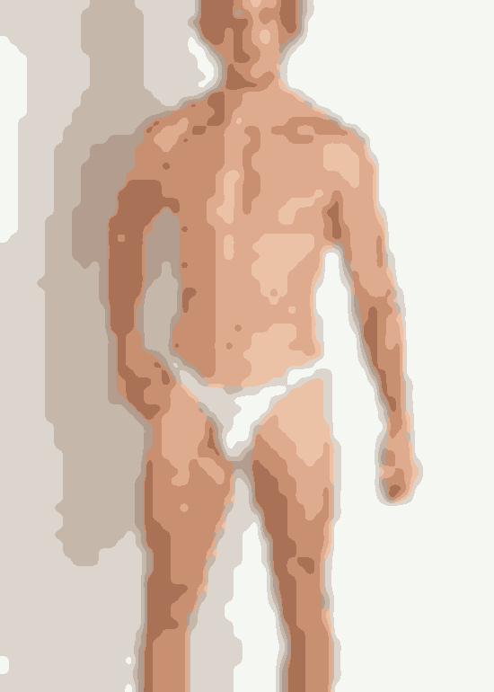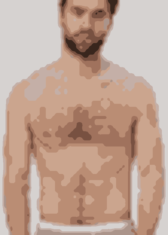 ylävartalo edestä, ei paitaa, ei lihaksikas, rintakarvoitusta |