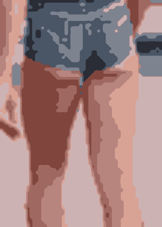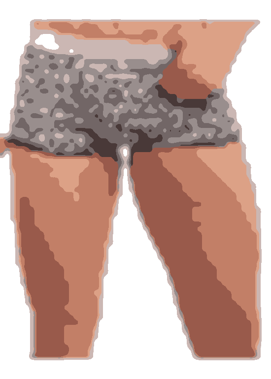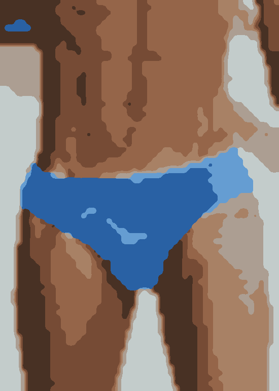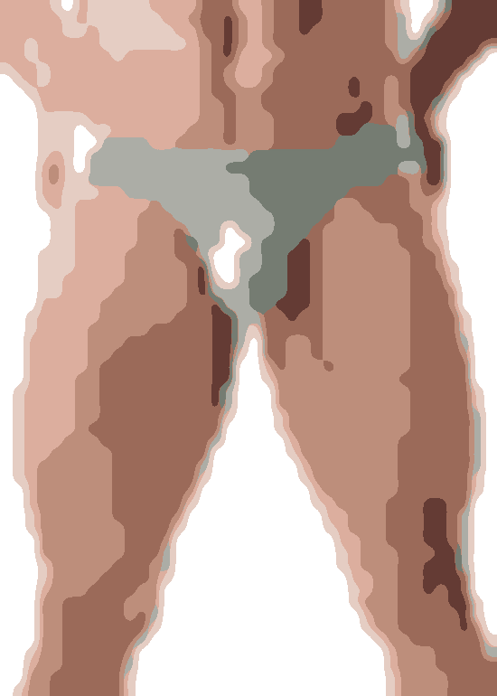 Tässä kysymyksessä oli edestä nähtynä sellaiset puoleen reiteen asti ulottuvat alushousut, jotka eivät oikaise mutkia suoriksi sukuelinten kohdalla, vaan muodostavat pussin peniksen ympärille. Tämä ei karkottanut naisia antamasta melko korkeita pisteitä. (3,61 ei olisi korkea pistemäärä minkään muun ihmisryhmän kohdalla, mutta hetero-naisilta tämä on keskitasoa korkeampi pistemäärä.) Kaikki muut kysymykset, joissa esitetään ihonmyötäistä pukeutumista lantion tai sukuelinten alueella, löytyvät listalta paljon alempaa.