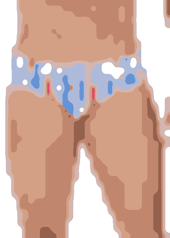 Tapauksessa GN naiset antoivat 2,94 pistettä valokuville, joissa näkyi vain miehen alavartalo vyötäröstä alaspäin melko väljissä housuissa, edestä ja takaa. Homoseksuaalit miehet antoivat niinkin korkeat pisteet kuin 5,50 kahden vastaajan otannalla, jotka olivat ne kaksi henkilöä, joilla oli tapana antaa korkeimpia pisteitä yleisesti ottaen. Heteroseksuaalit miehet antoivat naisen alavartalolle 1,84 pistettä erittäin väljissä housuissa, tapauksessa CR.