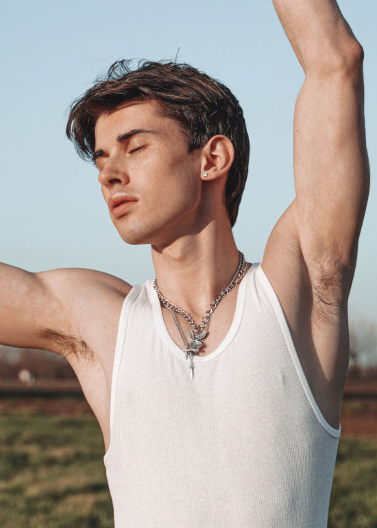 ylävartalo edestä, paidan hiha hauiksen puoliväliin, karvoitusta, ei lihaksikas |
