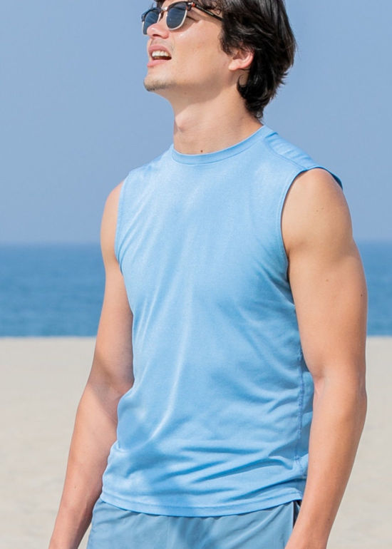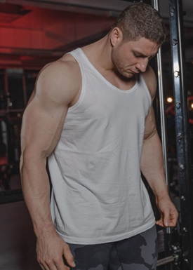 lihaksikas, hihaton paita, vain ylävartalo, sivulta ja etuviistosta |